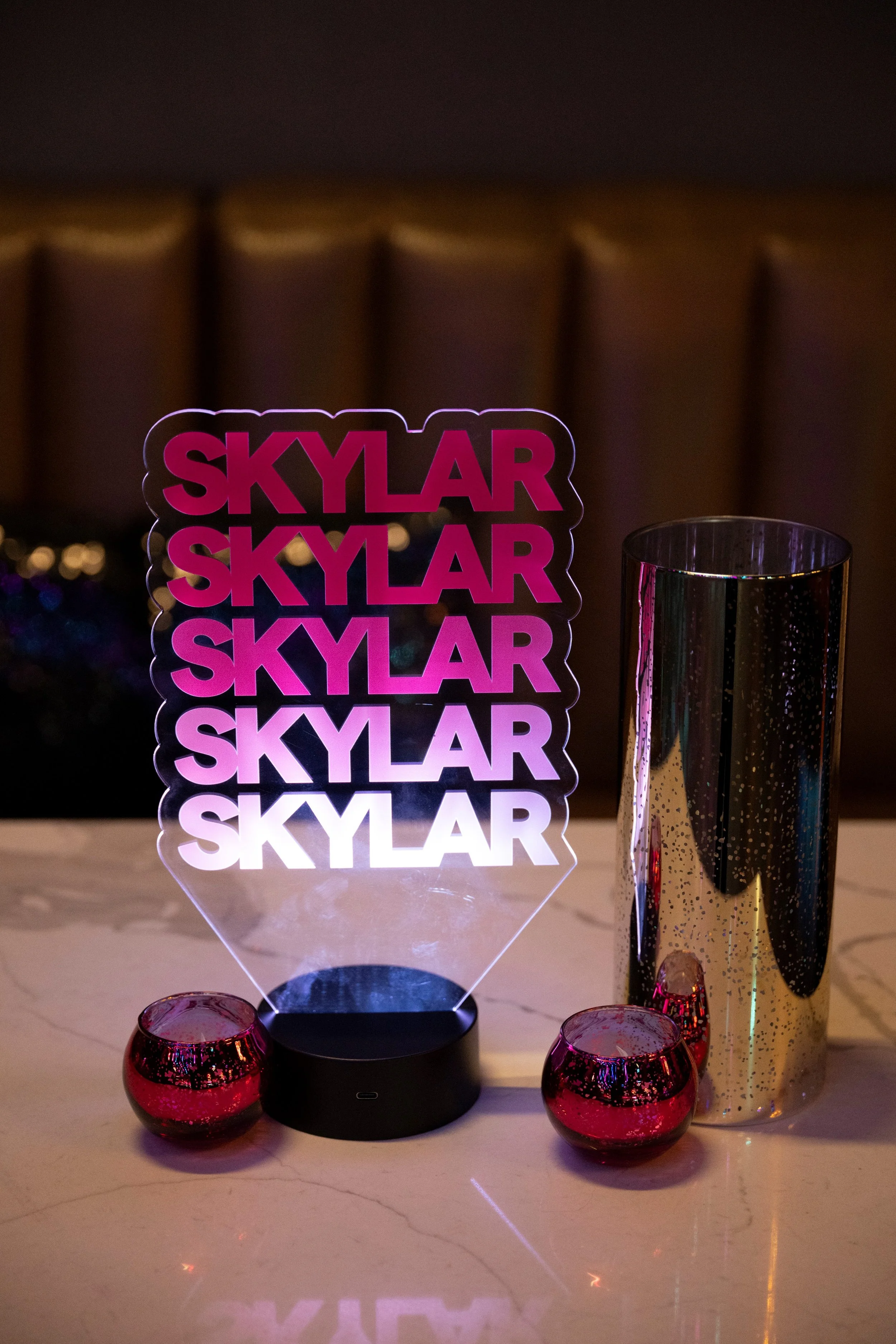 Escort cards seating charts centerpieces gift boxes neon signage candlelighting Menu/food signage table numbers photo prints chargers welcome signs additional decor